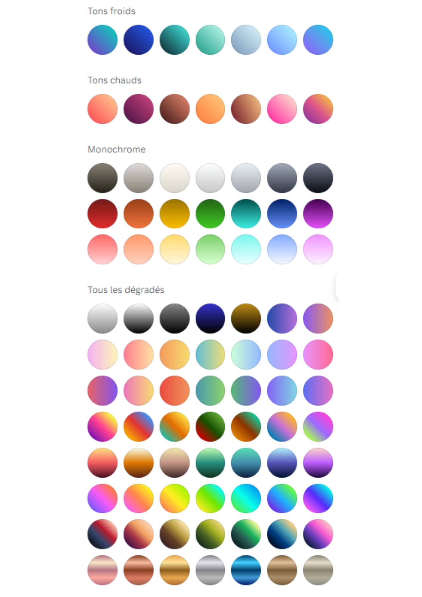 Couleurs disponibles